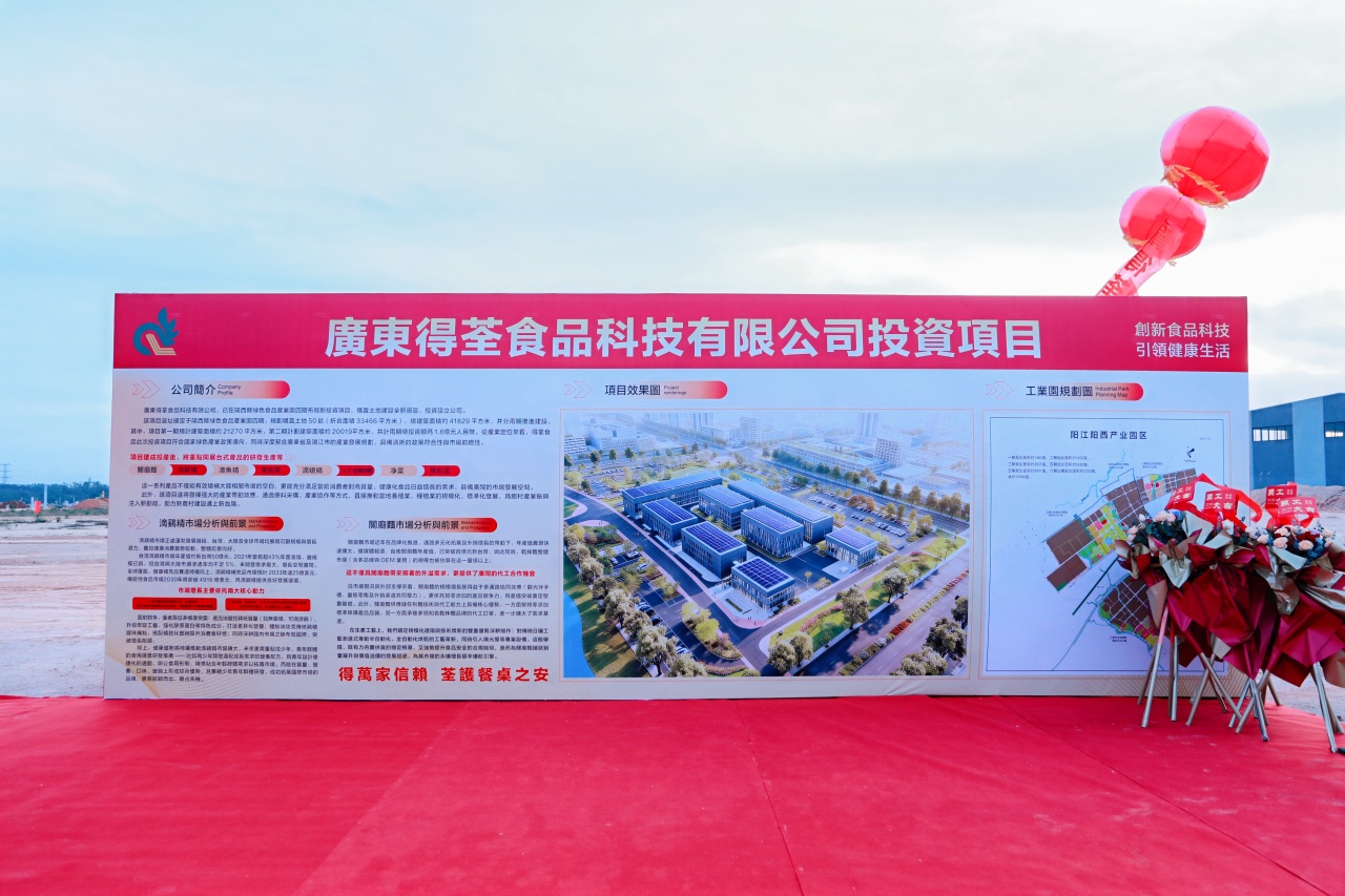 据了解,广东得荃食品科技有限公司是落地阳江阳西产业园的首个台企项目,该项目“拿地即动工”,总建筑面积约41829平方米,分两期推进建设,总投资额为1.6亿元。建成投产后,将重点开展台式关庙面条、滴鸡精、滴鱼精、滴蚝精、滴蚬精、SOD营养酵素、净菜及预制菜等产品的研发生产,有效填补大陆相关市场的空白,充分满足当前消费者对高质量、健康化食品日益增长的需求。